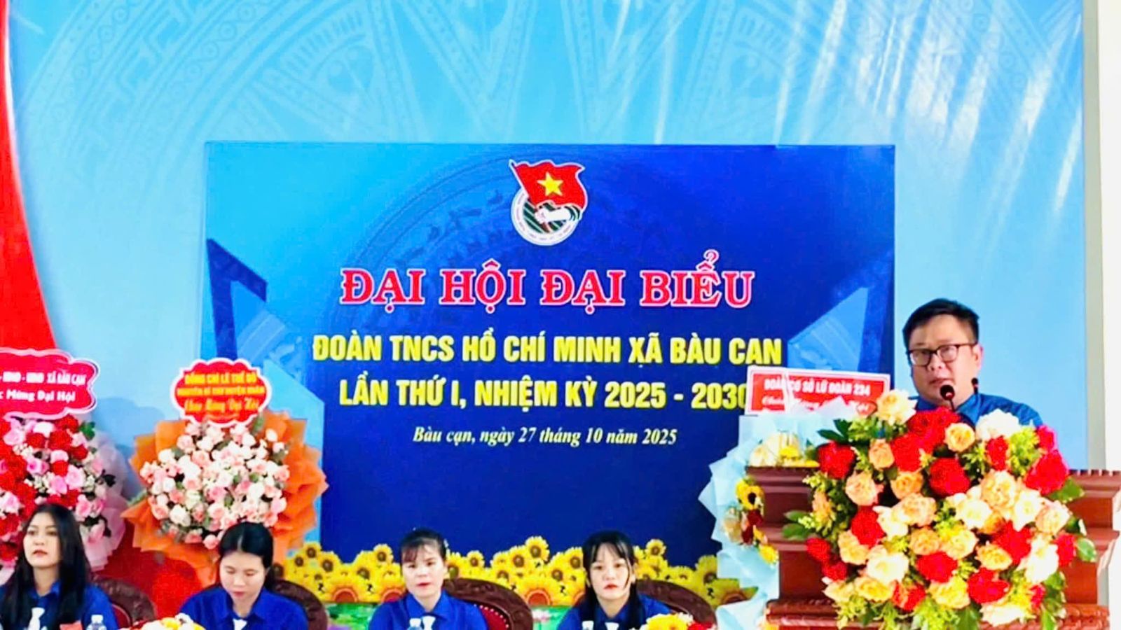 Thay mặt Ban Thường vụ Tỉnh đoàn, đồng chí Nguyễn Chí Hiếu - Phó Bí thư Tỉnh đoàn ghi nhận và đánh giá cao công tác chuẩn bị cho Đại hội. Đặc biệt là những kết quả mà Đoàn xã đã đạt được trong thời gian qua. Đồng chí nhấn mạnh Ban Chấp hành nhiệm kỳ mới cần tiếp tục đổi mới phương thức hoạt động, phát huy vai trò tiên phong, lãnh đạo, dẫn dắt và truyền cảm hứng cho công tác đoàn và phong trào thanh thiếu nhi; chú trọng công tác nắm bắt, định hướng dư luận xã hội trong đoàn viên, thanh niên tại địa phương; tăng cường đoàn kết, tập hợp thanh niên, đặc biệt trong công tác dân tộc, tôn giáo; đồng thời, đẩy mạnh thúc đẩy các hoạt động chuyển đổi số trong đoàn viên, thanh niên góp phần xây dựng xã Bàu Cạn ngày càng phát triển.