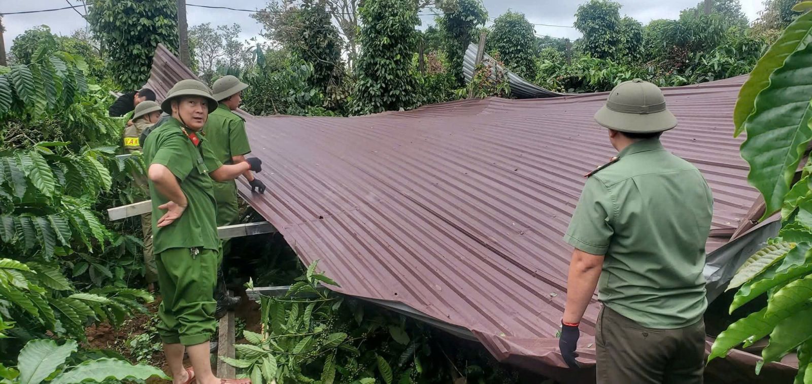 Một số hình ảnh Công an xã hỗ trợ người dân khắc phục sau cơn bão số 13